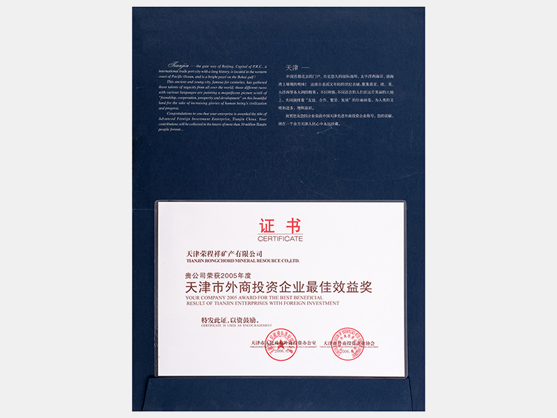2005年度天津市外商投資企業(yè)最佳效益獎