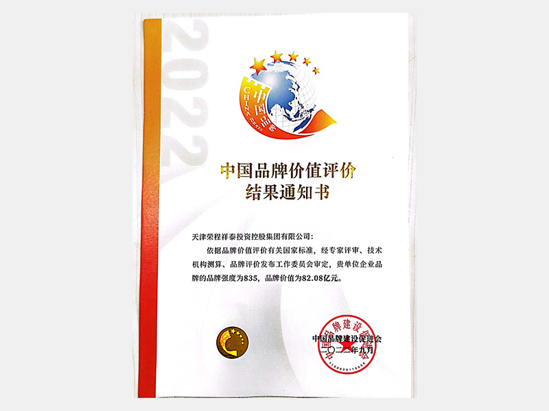 中國(guó)品牌價(jià)值評(píng)價(jià)結(jié)果通知書