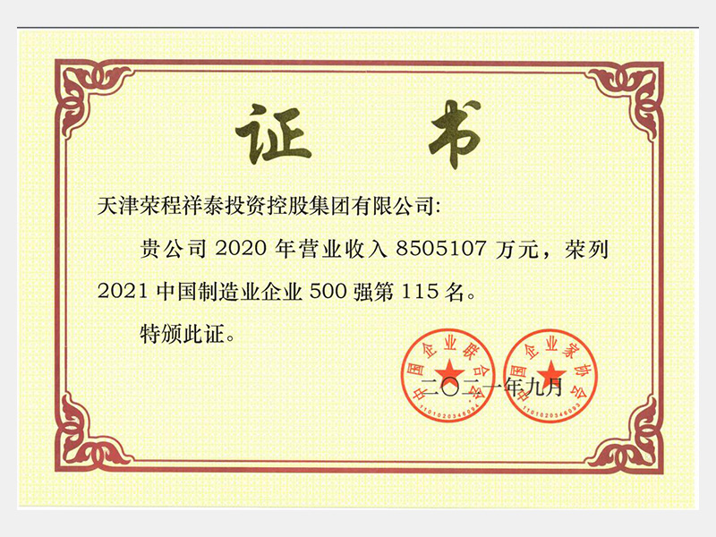 2021中國(guó)制造業(yè)企業(yè)500強(qiáng)第115名