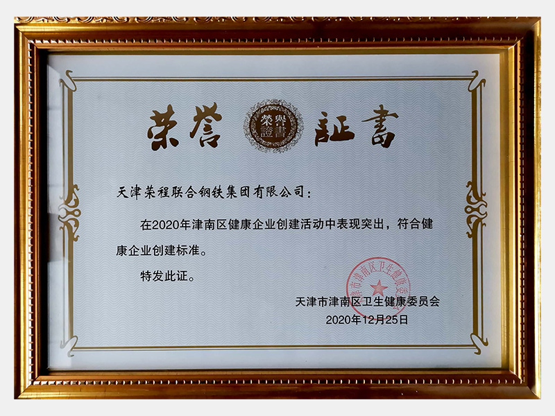 在2020年津南區(qū)健康企業(yè)創(chuàng)建活動(dòng)中表現(xiàn)突出,符合健康企業(yè)創(chuàng)建標(biāo)準(zhǔn)。特發(fā)此證