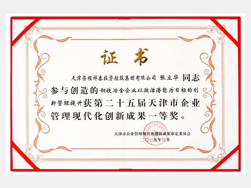 張立華同志參與創(chuàng)造的鋼鐵冶金企業(yè)以激活潛能為目標的創(chuàng)新管理提升獲第二十五屆天津市企業(yè)管理現(xiàn)代化創(chuàng)新成果一等獎。