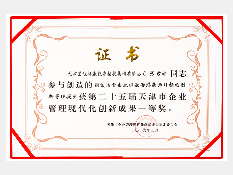 張君婷同志參與創(chuàng)造的鋼鐵冶金企業(yè)以激活潛能為目標(biāo)的創(chuàng)新管理提升獲第二十五屆天津市企業(yè)管理現(xiàn)代化創(chuàng)新成果一等獎(jiǎng)。
